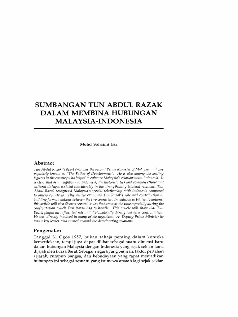 Sumbangan Tun Abdul Razak Dalam Membina Hubungan Malaysia Indonesia Pdf